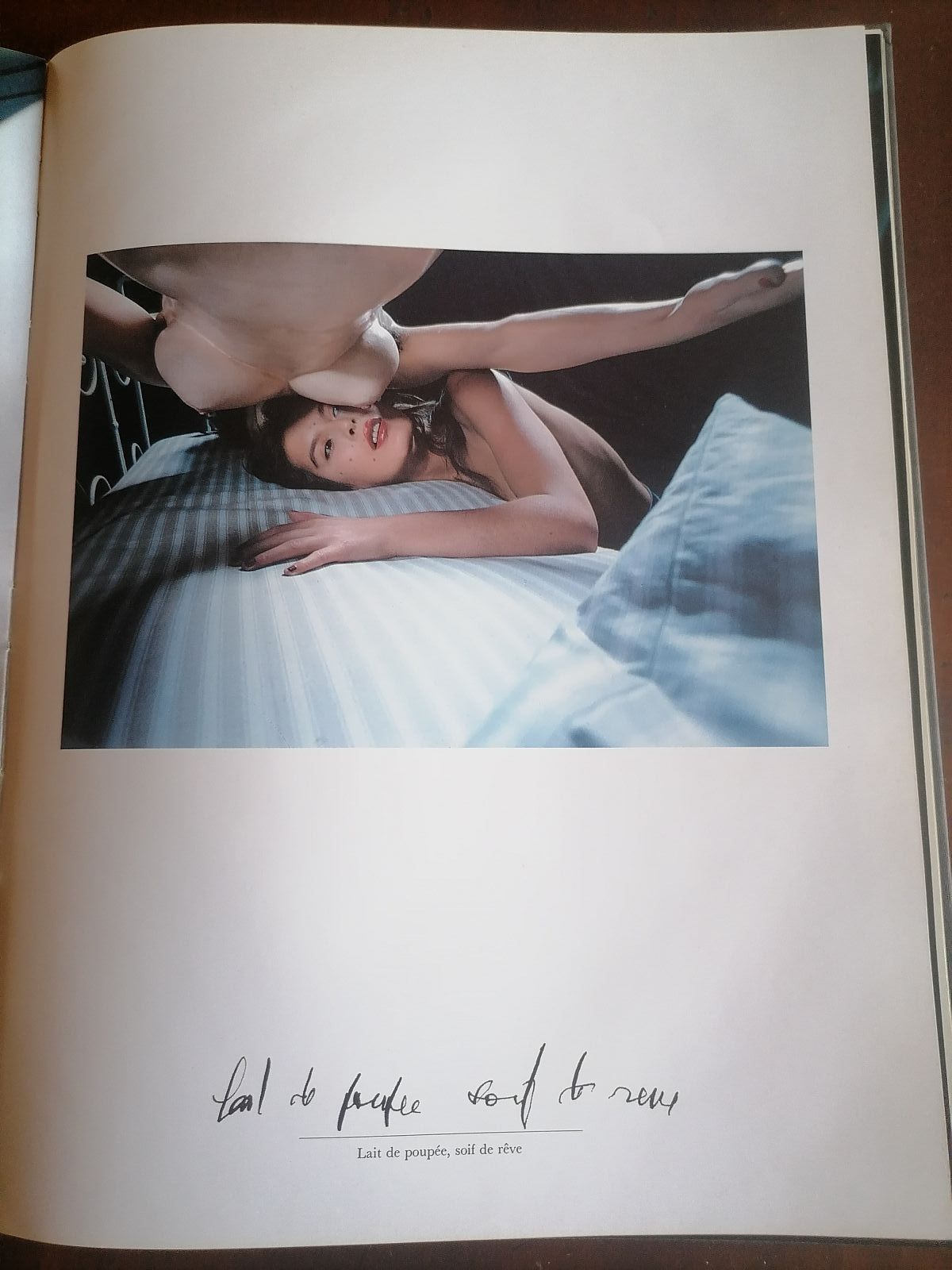 Livre de photographies de Serge Gainsbourg, avec Bambou pour modèle. Format : 23 x 31 cm. Couverture toilée rigide, intérieur couleurs, non paginé. Extérieur un peu marqué par le temps (petite déchirure en haut du dos), la jaquette initiale a été découpée et collée sur la première de couverture, petite inscription de prix au crayon sur la première page, intérieur propre. 60 €