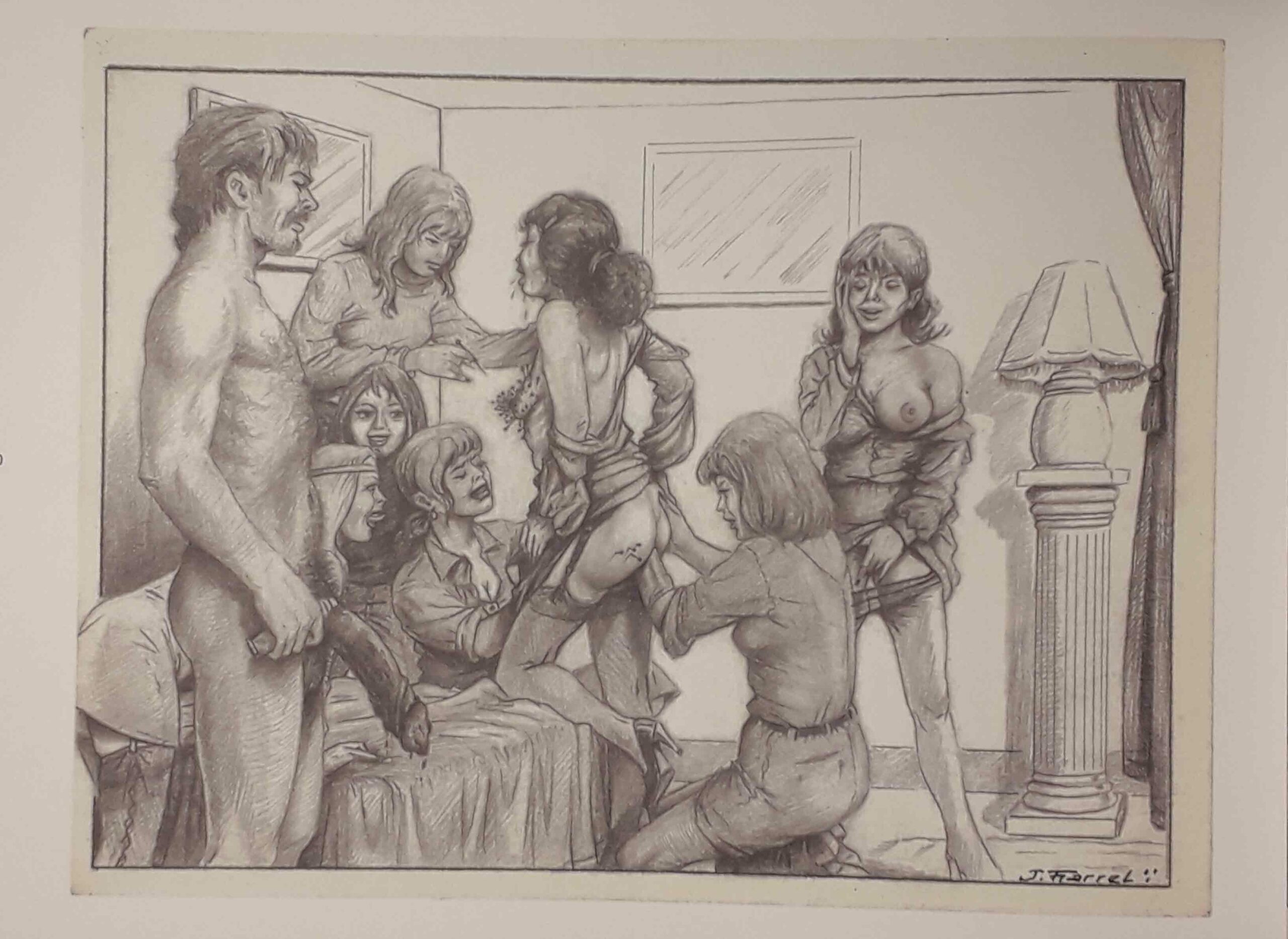Belle anecdote d’ailleurs qui résume bien cela : il y a peu, à l’occasion de la parution de cette monographie, la galerie Agnès B a exposé des dessins pour quelques semaines. Ainsi, grâce à ce livre, Farrel est passé des sex-shops à une galerie parisienne. Le « pornographe » est aujourd’hui un « artiste ». Je ne sais pas ce qu’il en pense, mais j’imagine volontiers qu’il s’en amuse beaucoup !