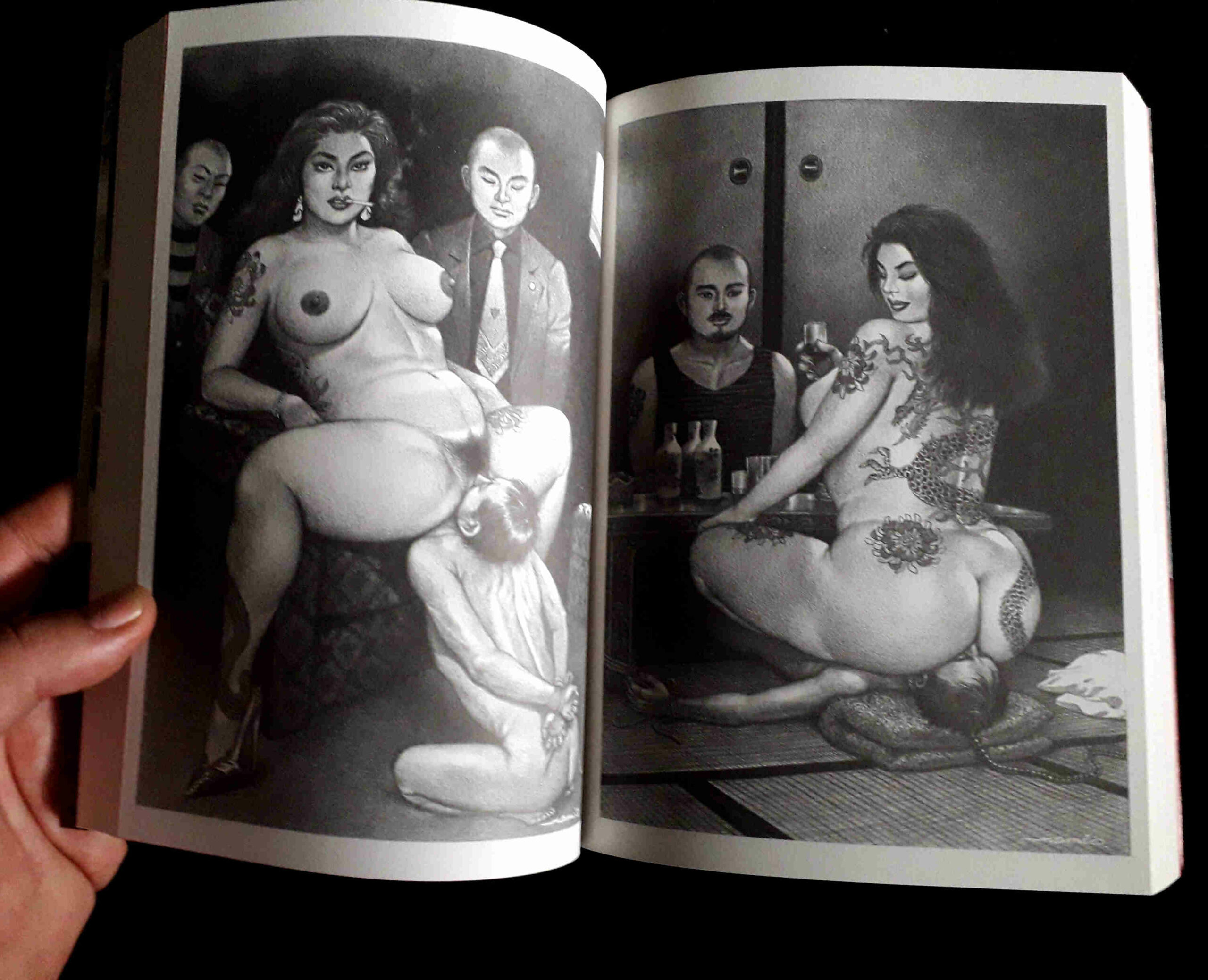 Né en 1947 au Japon, Namio Harukawa – un pseudonyme – s’est dès ses débuts (en 1962, donc plutôt jeune) orienté vers les dessins érotiques à connotation sadomasochiste. Il a essentiellement œuvré pour des revues pornographiques, dans son pays, avant d’accéder à une plus large notoriété à la fin des années 1990 et dans les années 2000. J’ai trouvé sur internet deux recueils de ses dessins qui auraient été publiés en 1980 et 1994. Difficile cependant pour moi d’en donner les titres, dans la mesure où il s’agit d’ouvrages écrits en japonais… En 2002 est ensuite sorti un livre en deux volumes : Kyojo Katsuai. Puis en 2012, un autre titre, traduit en anglais : Garden of Domina. En France, ce sont les éditions United Dead Artists qui ont importé Namio Harukawa, avec la publication de deux titres : Callipyge en 2009 et Maxi Cula en 2012. Hormis Garden of Domina, tous ces titres sont aujourd’hui épuisés, difficiles d’accès et… hors de prix.