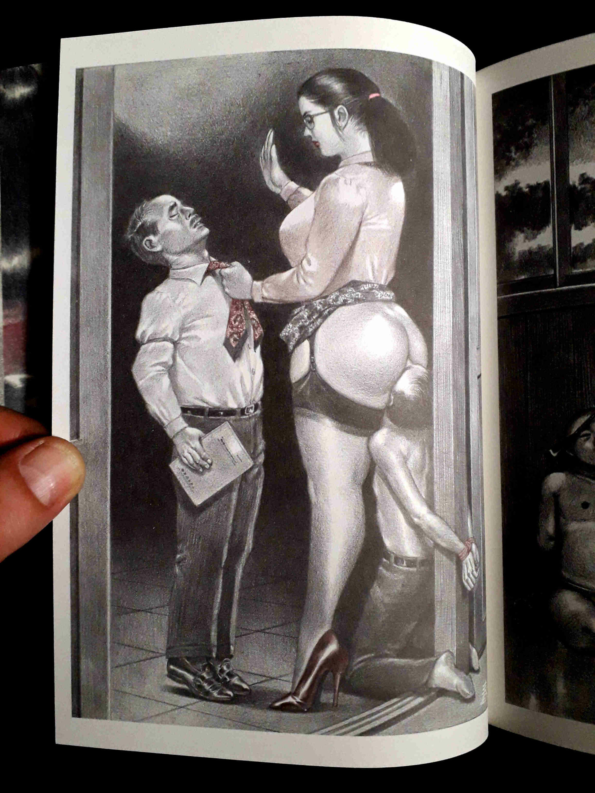 Mais les femmes du dessinateur restent belles. Elles se parent volontiers de tenues féminines et de tous les accessoires qui provoquent l’imaginaire érotique masculin : talons aiguilles, bas, porte-jarretelles, rouge à lèvres et vernis à ongles. Elles s’affichent comme objets de désir, usant des ingrédients fétichistes classiques de l’érotisme et de la pornographie. En ce sens, elles ne sont pas dénoncées comme ennemies de l’homme, il ne s’agit pas d’accuser leur domination. Celle-ci au contraire apparaît naturelle, évidente. Et c’est exactement ce qu’expriment leurs visages et leurs attitudes. Leurs traits sont fins et elles adoptent toujours un air serein, légèrement distant. Elles fument, boivent un verre, se détendent avec élégance. L’ennui pointe parfois dans leurs regards et l’homme coincé entre leurs cuisses, usant de sa langue pour leur offrir du plaisir, se donne à voir comme quelque chose de simple, d’indiscutable, quelque chose de tout à fait normal.