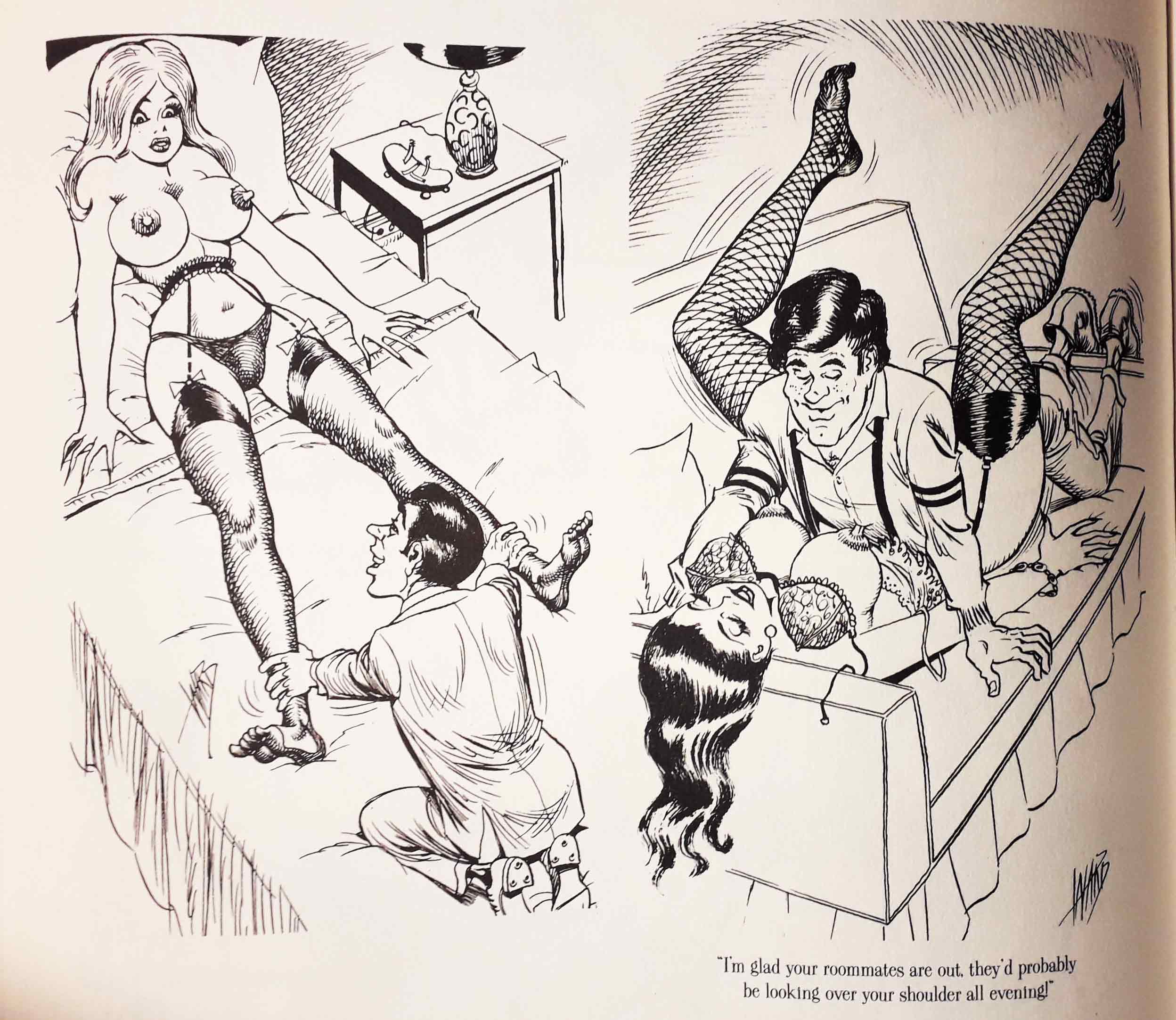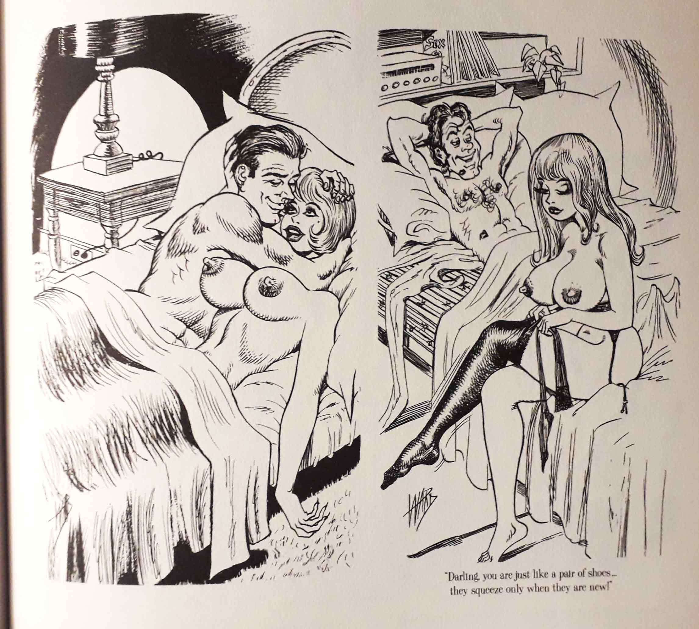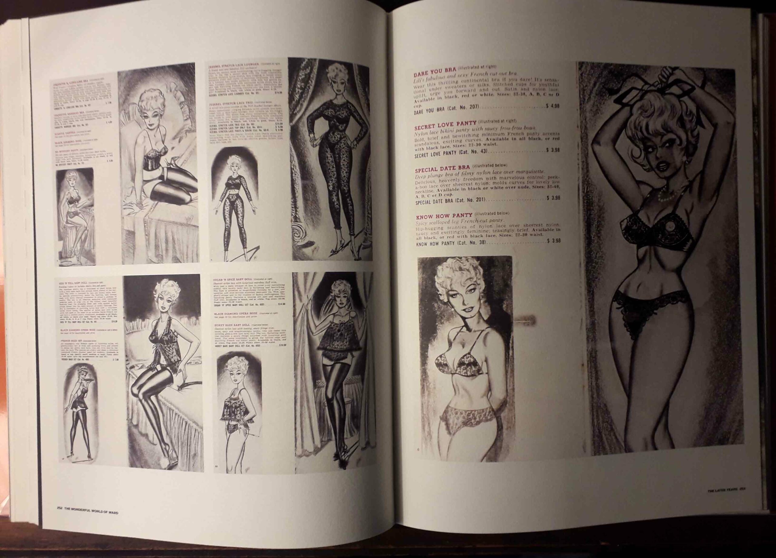 Ce livre retrace donc le parcours artistique de Ward à travers de très nombreux dessins soigneusement reproduits et précisément légendés. Je regrette cependant que ses œuvres tardives, celles de l’époque de Sex to Sexty et Eros Goldstripe, soient assez peu représentées. Pour ce que j’ai pu en voir sur Internet, ce ne sont certes pas les meilleures. On y reconnaît la patte de Ward, mais elles semblent moins originales, plus conformes à un style que l’on retrouve chez d’autres. J’aurais aimé cependant que cette production soit plus abondamment représentée dans l’ouvrage.