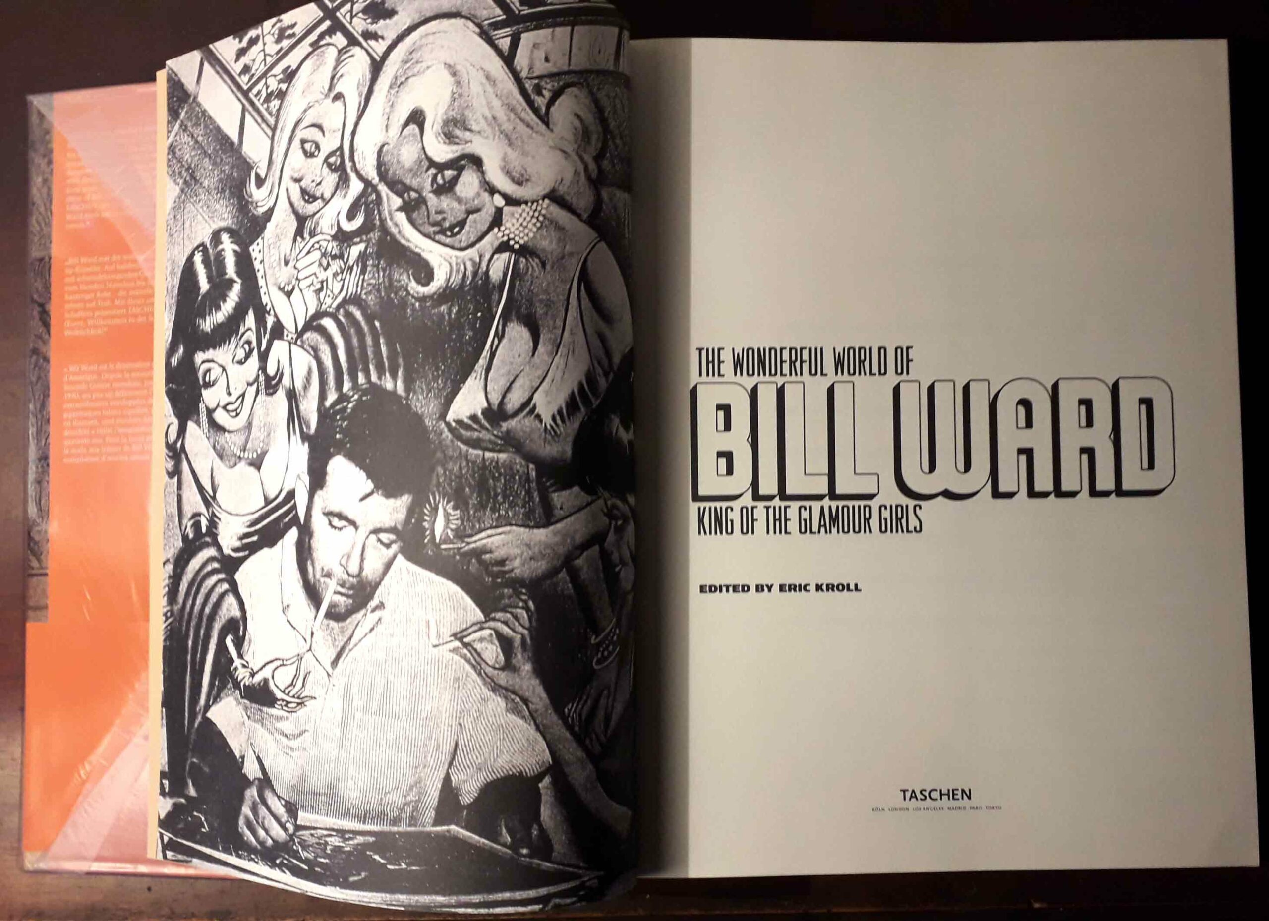 Voici un livre que j’apprécie particulièrement dans mon Érothèque : The Wonderful World of Bill Ward, King of Glamour Girls. Un livre imposant, il faut le dire, puisqu’il mesure 35 cm de haut par 26,5 cm de large, pour une épaisseur 5 cm (346 pages de papier bouffant d’environ 100 g je dirais). Ce format lui permet du coup de faire la part belle aux très nombreuses illustrations, la plupart en pleine page.