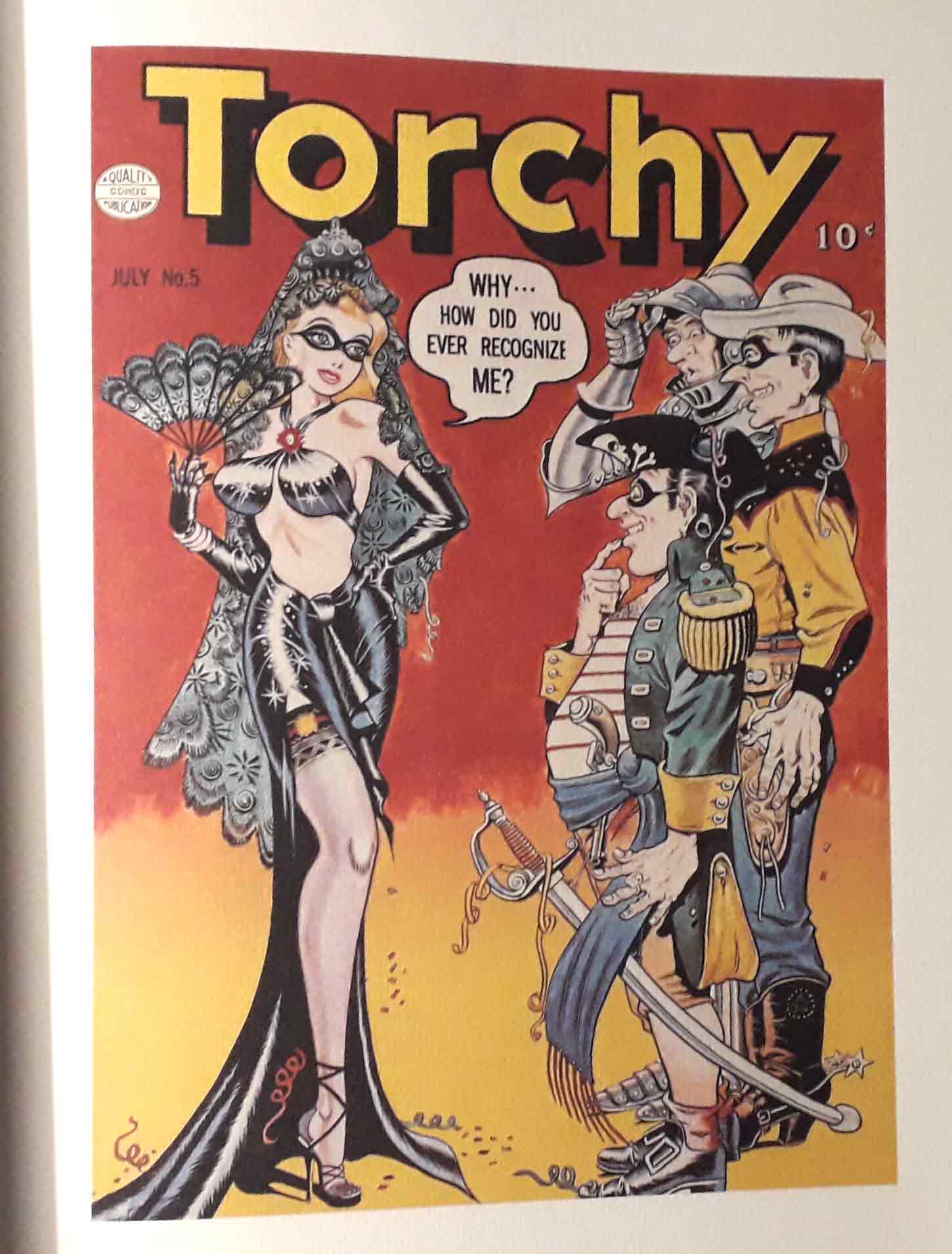 Je ne saurais résumer ici tout ce que contient cette riche présentation. Toutefois, pour situer l’homme, précisons qu’il est né en 1919. Il réalise ses premiers dessins rémunérés à l’âge de 17 ans, avant d’étudier l’illustration au Pratt Institute de Brooklyn. C’est alors les débuts de l’âge d’or de la bande dessinée aux États-Unis, et Ward fait ses premières armes pour différents éditeurs. Il y apprend ainsi les différents métiers de l’illustration et de la BD (encrage, mis en page, dessins d’arrière-plan, etc.) et affûte son savoir-faire. Appelé sous les drapeaux, il continue de travailler secrètement pour Quality Comics. Mais il se fait coincer et l’armée lui demande de dessiner pour elle. Il invente alors le personnage de Ack-Ack Amy, une fille à matelots qui préfigure de Torchy, qui deviendra héroïne de BD à part entière en 1949.