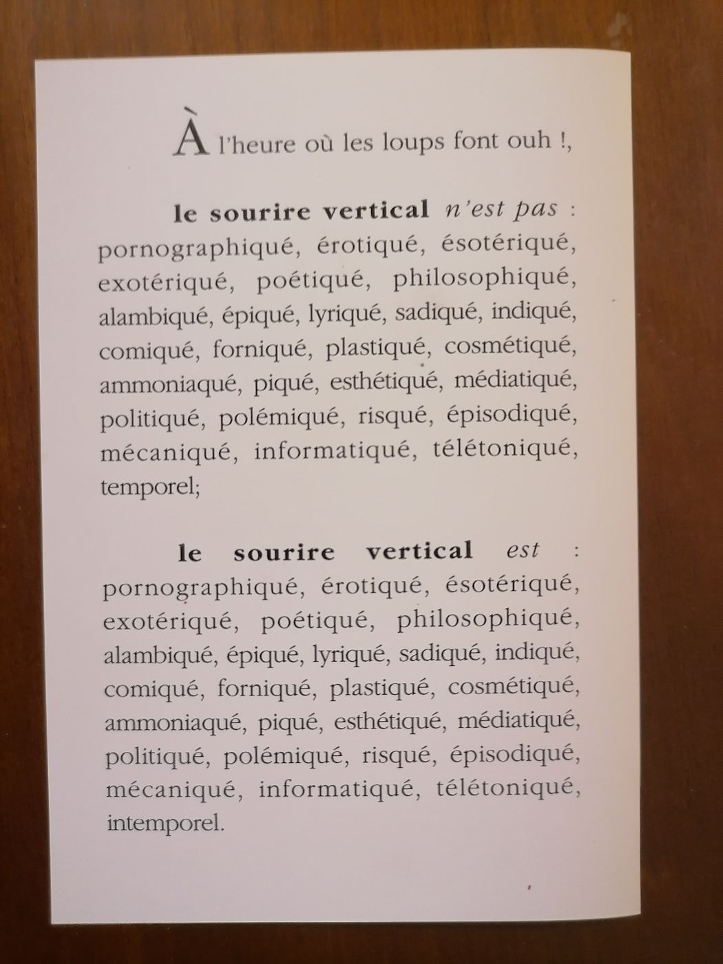 Le Sourire vertical, publication intemporelle
