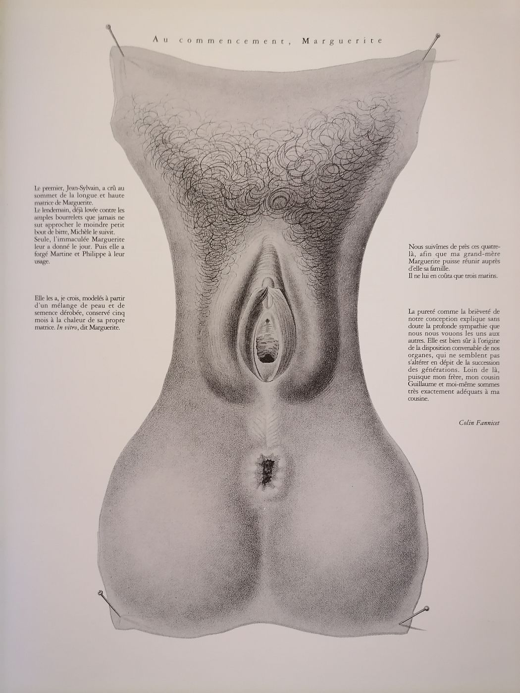 Côté contenu, tous les modes d’expression sont convoqués : poésie, aphorisme, dessin, photographie, interview, nouvelle, etc. On retrouve des œuvres graphiques signées Gilles Berquet, Hans Bellmer, Robert Crumb, Tom of Finland, Yoshifumi Hayashi, Anne Van der Linden, Richard Cerf (couverture du numéro 0), etc., des rééditions d’extraits de textes d’Aragon, René Char, Philippe Sollers, L’Érotin (Alphonse Momas) ainsi que des textes inédits, des interviews (dont une de Félix Guattari), une recette de cuisine… Un peu de tout en somme, sans rubriquage rigoureux revenant d’un numéro à l’autre. D’une manière générale, la revue questionne l’érotisme et les sexualités avec un ton surréaliste et subversif, un peu noir aussi comme le souligne une lectrice dans le « Courrier des lecteurs ». Un « Courrier » toujours très décalé dont on se demande s’il est fictif ou authentique. Mais cela a-t-il vraiment une importance ?